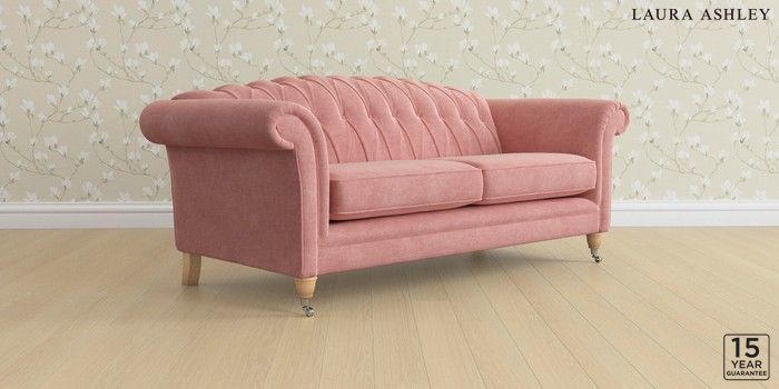 6.12.13 Buy Gloucester Button Back by Laura Ashley 3 Seater Sofa Bainton Old Rose Pink Low Chrome Castor - Light Oak from the Next UK online shop Click here to use our accessible website