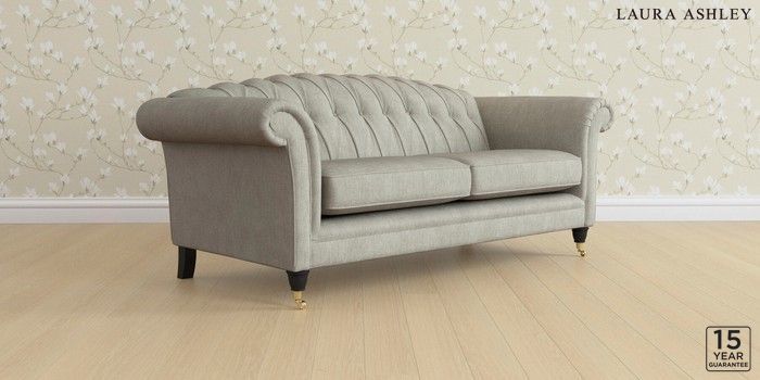 6.12.1 Buy Gloucester Button Back by Laura Ashley 3 Seater Sofa Bainton Pale Steel Grey Low Brass Castor - Black from the Next UK online shop Click here to use our accessible website