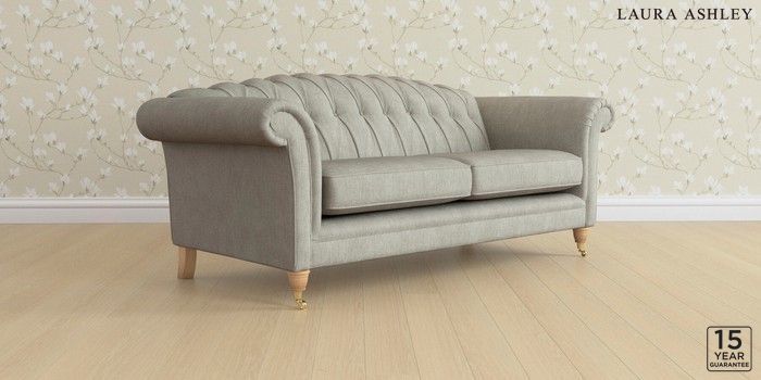 6.12.1 Buy Gloucester Button Back by Laura Ashley 3 Seater Sofa Bainton Pale Steel Grey Low Brass Castor - Light Oak from the Next UK online shop Click here to use our accessible website
