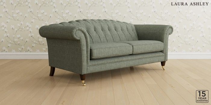6.12.13 Buy Gloucester Button Back by Laura Ashley 3 Seater Sofa Bainton Sage Green Low Brass Castor - Chestnut from the Next UK online shop Click here to use our accessible website