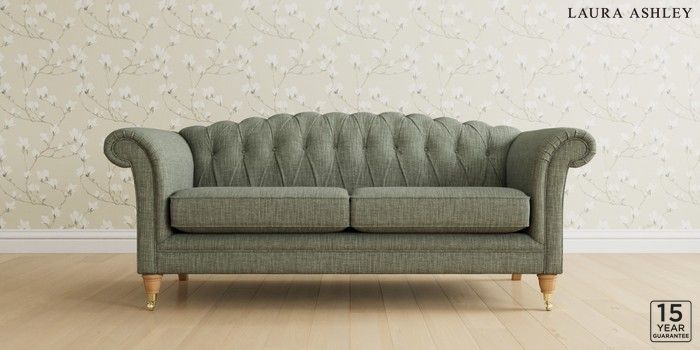 6.12.13 Buy Gloucester Button Back by Laura Ashley 3 Seater Sofa Bainton Sage Green Low Brass Castor - Light Oak from the Next UK online shop Click here to use our accessible website