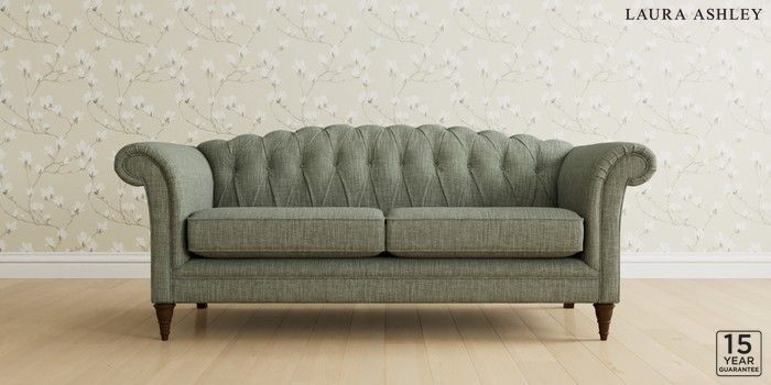 6.12.13 Buy Gloucester Button Back by Laura Ashley 3 Seater Sofa Bainton Sage Green Low Turned - Chestnut from the Next UK online shop Click here to use our accessible website