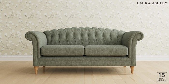 6.12.13 Buy Gloucester Button Back by Laura Ashley 3 Seater Sofa Bainton Sage Green Low Turned - Light Oak from the Next UK online shop Click here to use our accessible website