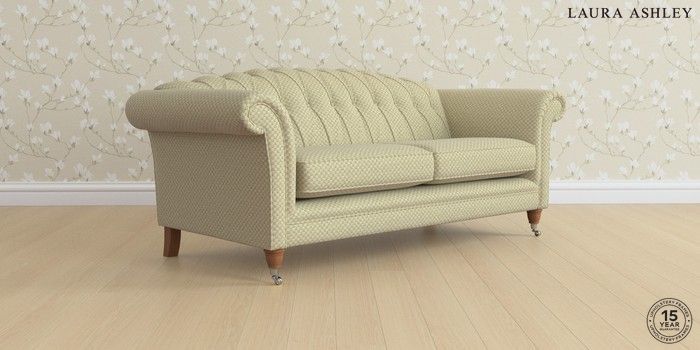 7.2.6 Buy Gloucester Button Back by Laura Ashley 3 Seater Sofa Chequers Hedgerow Green Low Chrome Castor - Teak from the Next UK online shop Click here to use our accessible website