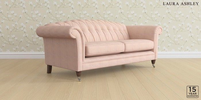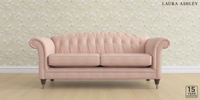 6.12.13 Buy Gloucester Button Back by Laura Ashley 3 Seater Sofa Edwin Chenille Blush Pink Low Chrome Castor - Chestnut from the Next UK online shop Click here to use our accessible website