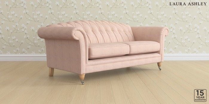 6.12.13 Buy Gloucester Button Back by Laura Ashley 3 Seater Sofa Edwin Chenille Blush Pink Low Chrome Castor - Light Oak from the Next UK online shop Click here to use our accessible website
