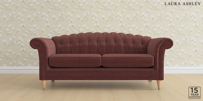 6.12.13 Buy Gloucester Button Back by Laura Ashley 3 Seater Sofa Edwin Chenille Burgundy Red Low Turned - Light Oak from the Next UK online shop Click here to use our accessible website