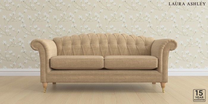 6.12.1 Buy Gloucester Button Back by Laura Ashley 3 Seater Sofa Edwin Chenille Gold Natural Low Brass Castor - Light Oak from the Next UK online shop Click here to use our accessible website