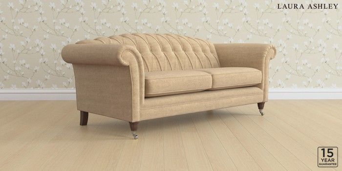 6.12.1 Buy Gloucester Button Back by Laura Ashley 3 Seater Sofa Edwin Chenille Gold Natural Low Chrome Castor - Chestnut from the Next UK online shop Click here to use our accessible website