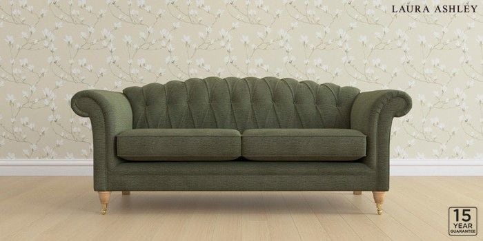 6.12.13 Buy Gloucester Button Back by Laura Ashley 3 Seater Sofa Edwin Chenille Hedgerow Green Low Brass Castor - Light Oak from the Next UK online shop Click here to use our accessible website