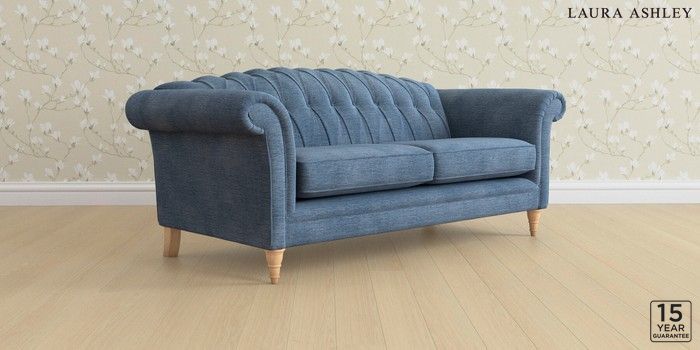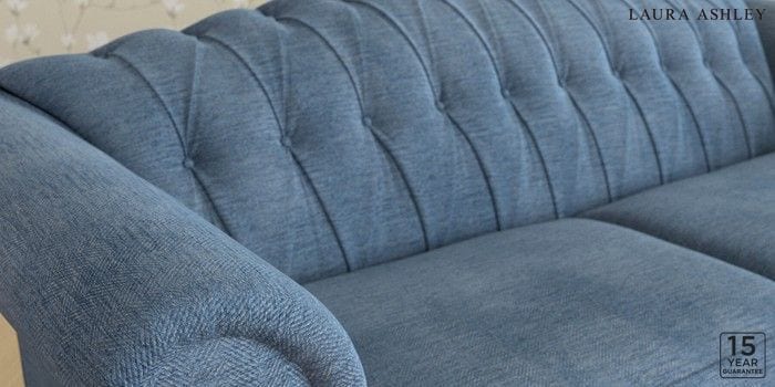 6.12.13 Buy Gloucester Button Back by Laura Ashley 3 Seater Sofa Edwin Chenille Seaspray Blue Low Turned - Light Oak from the Next UK online shop Click here to use our accessible website