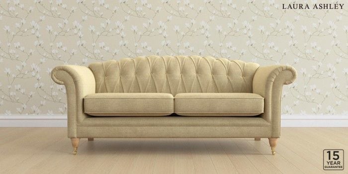 6.12.13 Buy Gloucester Button Back by Laura Ashley 3 Seater Sofa Edwin Chenille Truffle Natural Low Brass Castor - Light Oak from the Next UK online shop Click here to use our accessible website