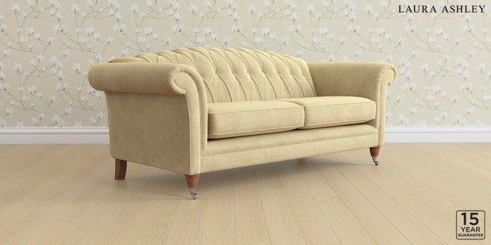 6.12.13 Buy Gloucester Button Back by Laura Ashley 3 Seater Sofa Edwin Chenille Truffle Natural Low Chrome Castor - Teak from the Next UK online shop Click here to use our accessible website