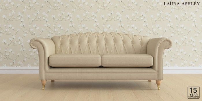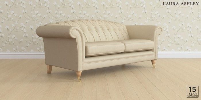 6.12.1 Buy Gloucester Button Back by Laura Ashley 3 Seater Sofa Edwin Herringbone Natural Low Brass Castor - Light Oak from the Next UK online shop Click here to use our accessible website