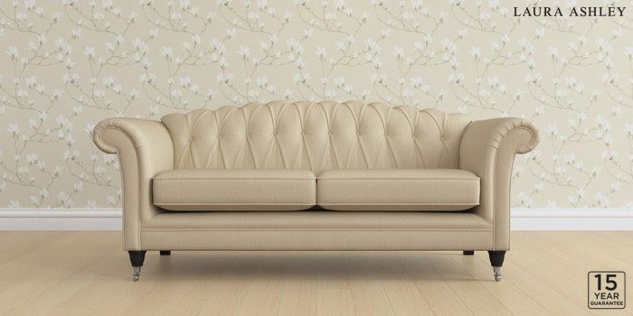 6.12.1 Buy Gloucester Button Back by Laura Ashley 3 Seater Sofa Edwin Herringbone Natural Low Chrome Castor - Black from the Next UK online shop Click here to use our accessible website