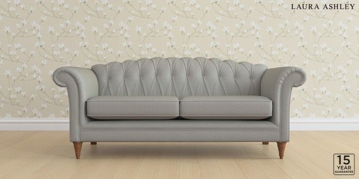 6.12.1 Buy Gloucester Button Back by Laura Ashley 3 Seater Sofa Edwin Herringbone Pale Steel Grey Low Turned - Teak from the Next UK online shop Click here to use our accessible website