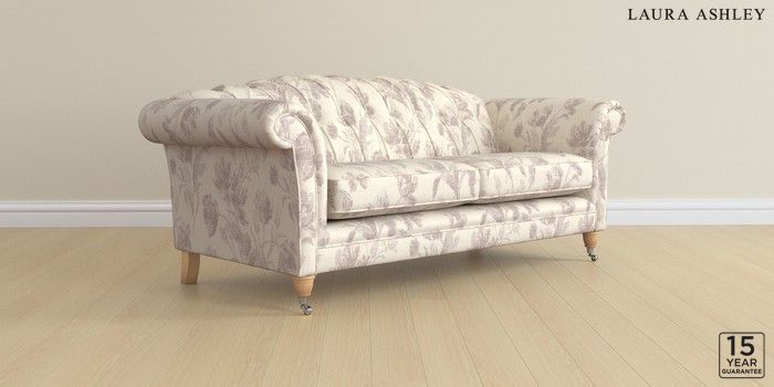 6.12.1 Buy Gloucester Button Back by Laura Ashley 3 Seater Sofa Gosford Weave Dusky Plum Purple Low Chrome Castor - Light Oak from the Next UK online shop Click here to use our accessible website