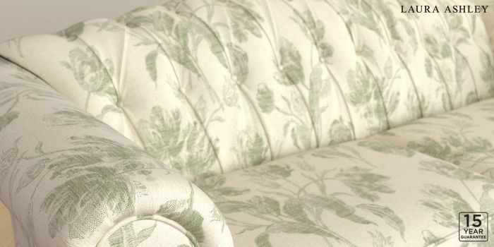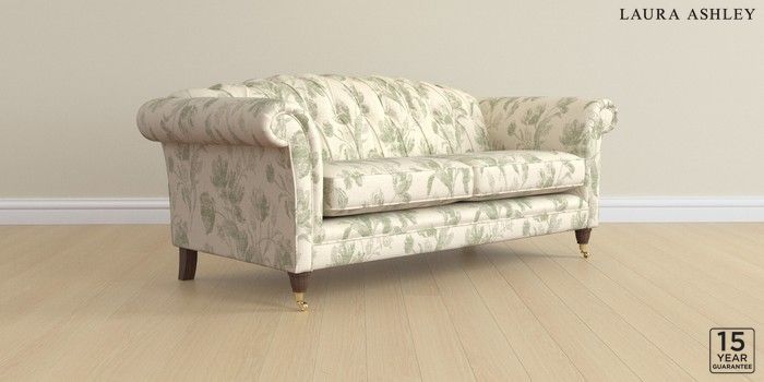 6.12.1 Buy Gloucester Button Back by Laura Ashley 3 Seater Sofa Gosford Weave Sage Green Low Brass Castor - Chestnut from the Next UK online shop Click here to use our accessible website