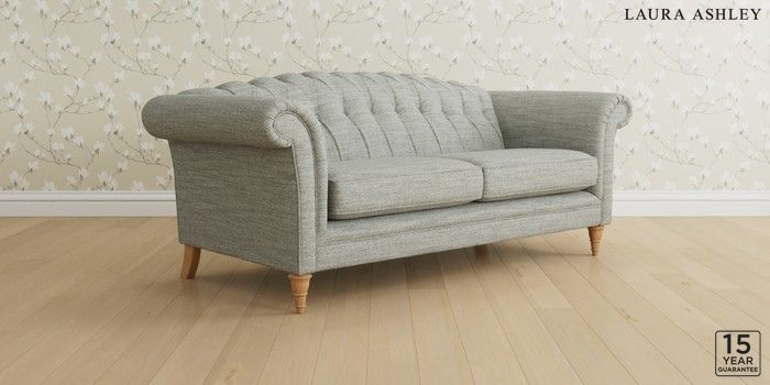 6.12.13 Buy Gloucester Button Back by Laura Ashley 3 Seater Sofa Harley Dove Grey Low Turned - Light Oak from the Next UK online shop Click here to use our accessible website