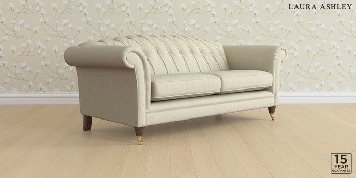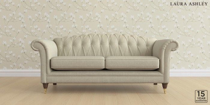 6.12.13 Buy Gloucester Button Back by Laura Ashley 3 Seater Sofa Kinsham Natural Low Brass Castor - Chestnut from the Next UK online shop Click here to use our accessible website