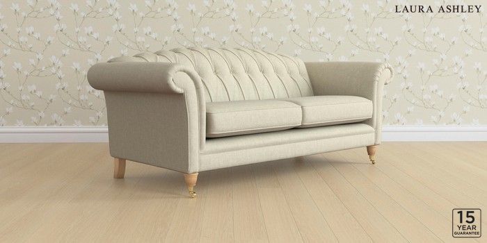 6.12.13 Buy Gloucester Button Back by Laura Ashley 3 Seater Sofa Kinsham Natural Low Brass Castor - Light Oak from the Next UK online shop Click here to use our accessible website