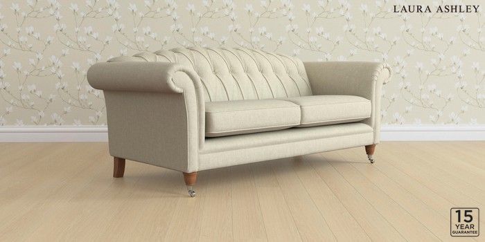 6.12.13 Buy Gloucester Button Back by Laura Ashley 3 Seater Sofa Kinsham Natural Low Chrome Castor - Teak from the Next UK online shop Click here to use our accessible website