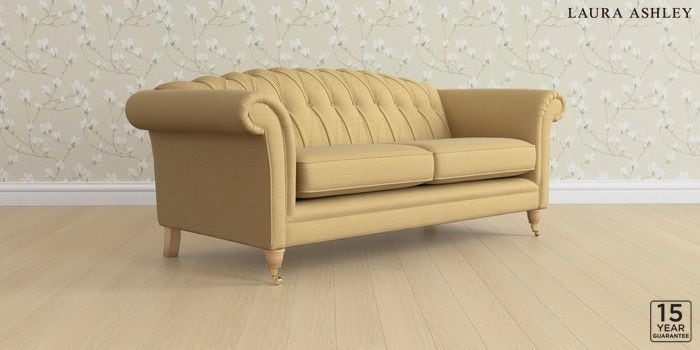 6.12.13 Buy Gloucester Button Back by Laura Ashley 3 Seater Sofa Kinsham Ochre Yellow Low Brass Castor - Light Oak from the Next UK online shop Click here to use our accessible website