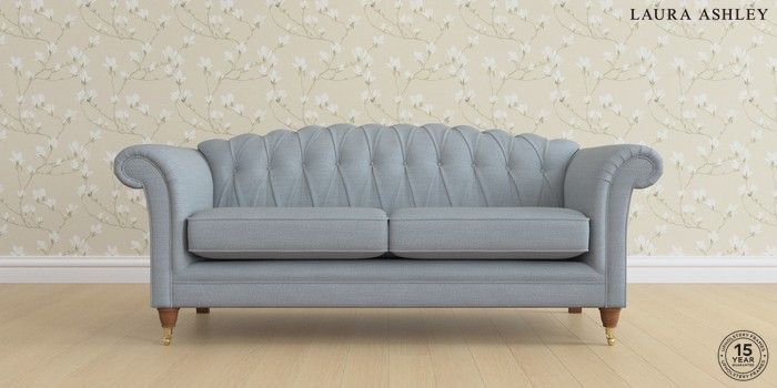 6.12.1 Buy Gloucester Button Back by Laura Ashley 3 Seater Sofa Kinsham Seaspray Blue Low Brass Castor - Teak from the Next UK online shop Click here to use our accessible website