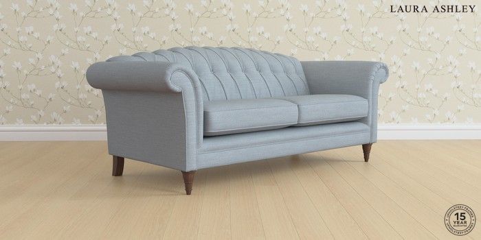 6.12.1 Buy Gloucester Button Back by Laura Ashley 3 Seater Sofa Kinsham Seaspray Blue Low Turned - Chestnut from the Next UK online shop Click here to use our accessible website