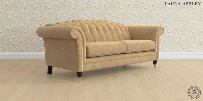 6.12.1 Buy Gloucester Button Back by Laura Ashley 3 Seater Sofa Lundar Chenille Caramel Natural Low Brass Castor - Black from the Next UK online shop Click here to use our accessible website