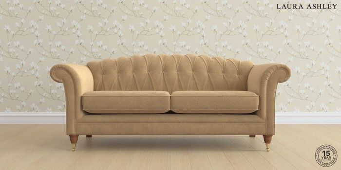 6.12.1 Buy Gloucester Button Back by Laura Ashley 3 Seater Sofa Lundar Chenille Caramel Natural Low Brass Castor - Teak from the Next UK online shop Click here to use our accessible website