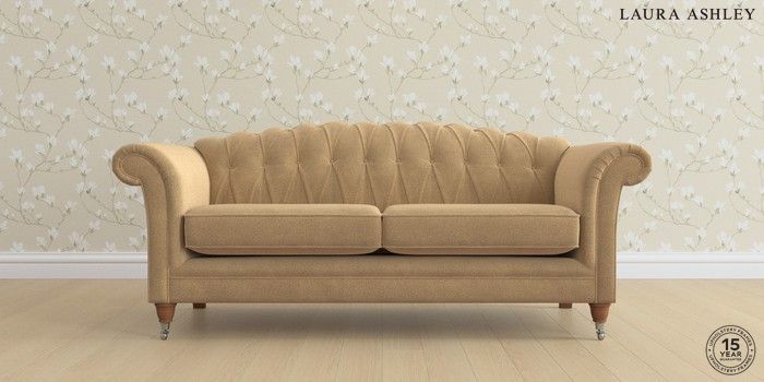 6.12.1 Buy Gloucester Button Back by Laura Ashley 3 Seater Sofa Lundar Chenille Caramel Natural Low Chrome Castor - Teak from the Next UK online shop Click here to use our accessible website