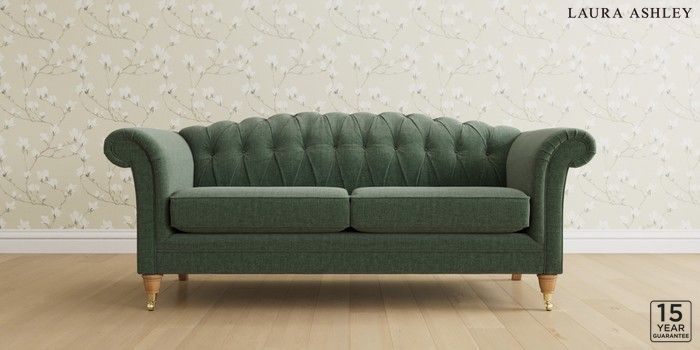 6.12.13 Buy Gloucester Button Back by Laura Ashley 3 Seater Sofa Nantmor Fern Green Low Brass Castor - Light Oak from the Next UK online shop Click here to use our accessible website