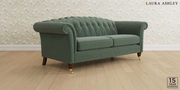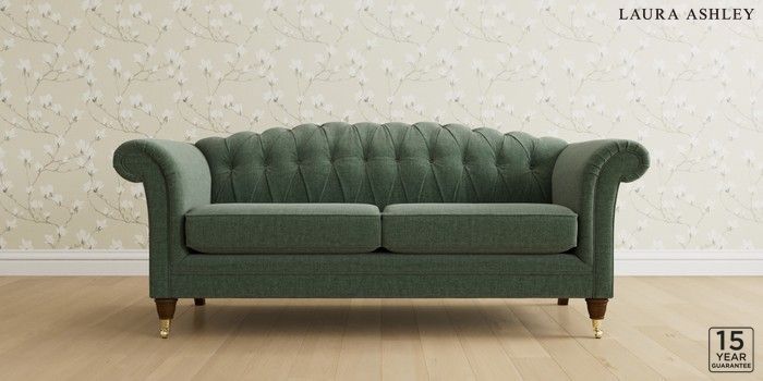6.12.13 Buy Gloucester Button Back by Laura Ashley 3 Seater Sofa Nantmor Fern Green Low Brass Castor - Teak from the Next UK online shop Click here to use our accessible website