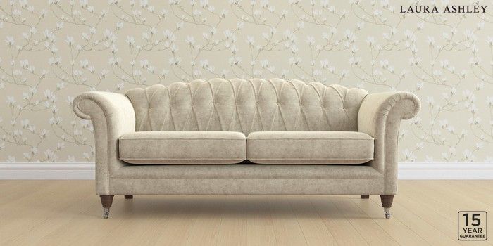 6.12.13 Buy Gloucester Button Back by Laura Ashley 3 Seater Sofa Nantmor Truffle Natural Low Chrome Castor - Chestnut from the Next UK online shop Click here to use our accessible website