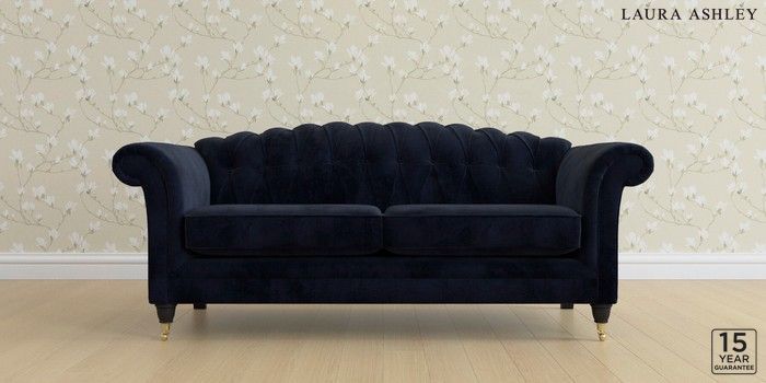 6.12.13 Buy Gloucester Button Back by Laura Ashley 3 Seater Sofa Orla Midnight Navy Low Brass Castor - Black from the Next UK online shop Click here to use our accessible website