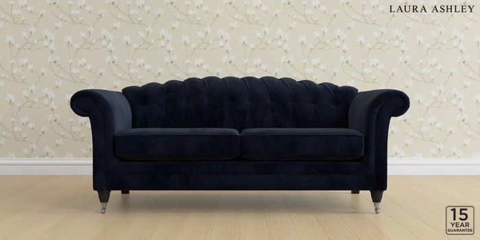 6.12.13 Buy Gloucester Button Back by Laura Ashley 3 Seater Sofa Orla Midnight Navy Low Chrome Castor - Black from the Next UK online shop Click here to use our accessible website