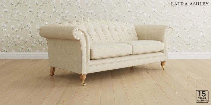 7.0.3 Buy Gloucester Button Back by Laura Ashley 3 Seater Sofa Orla Oyster Natural Low Brass Castor - Light Oak from the Next UK online shop Click here to use our accessible website