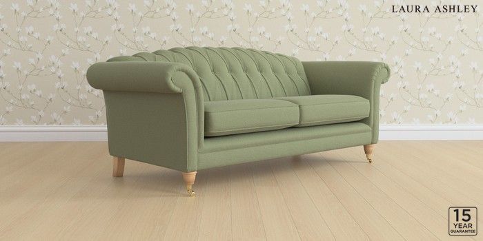 6.12.13 Buy Gloucester Button Back by Laura Ashley 3 Seater Sofa Peyton Hedgerow Green Low Brass Castor - Light Oak from the Next UK online shop Click here to use our accessible website