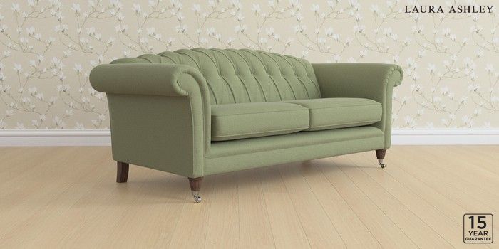 6.12.1 Buy Gloucester Button Back by Laura Ashley 3 Seater Sofa Peyton Hedgerow Green Low Chrome Castor - Chestnut from the Next UK online shop Click here to use our accessible website