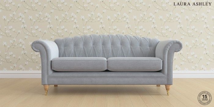 6.12.1 Buy Gloucester Button Back by Laura Ashley 3 Seater Sofa Peyton Powder Blue Low Brass Castor - Light Oak from the Next UK online shop Click here to use our accessible website