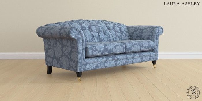 7.2.6 Buy Gloucester Button Back by Laura Ashley 3 Seater Sofa Tamara Dusky Seaspray Blue Low Brass Castor - Black from the Next UK online shop Click here to use our accessible website