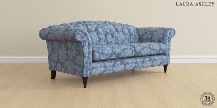 7.2.6 Buy Gloucester Button Back by Laura Ashley 3 Seater Sofa Tamara Dusky Seaspray Blue Low Turned - Black from the Next UK online shop Click here to use our accessible website
