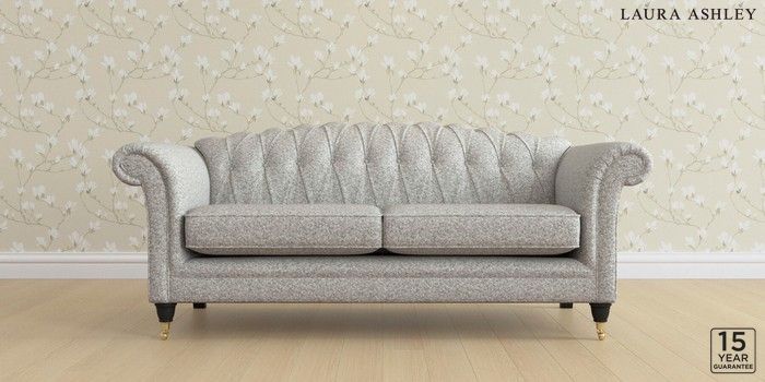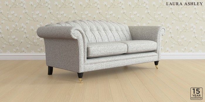 6.12.1 Buy Gloucester Button Back by Laura Ashley 3 Seater Sofa Tichwell Steel Grey Low Brass Castor - Black from the Next UK online shop Click here to use our accessible website