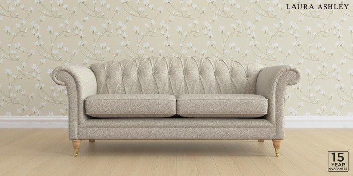 6.12.13 Buy Gloucester Button Back by Laura Ashley 3 Seater Sofa Tichwell Stone Natural Low Brass Castor - Light Oak from the Next UK online shop Click here to use our accessible website