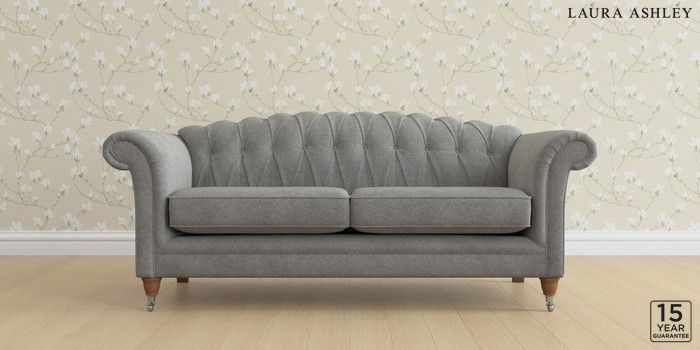 6.12.13 Buy Gloucester Button Back by Laura Ashley 3 Seater Sofa Wooton Dark Steel Grey Low Chrome Castor - Teak from the Next UK online shop Click here to use our accessible website