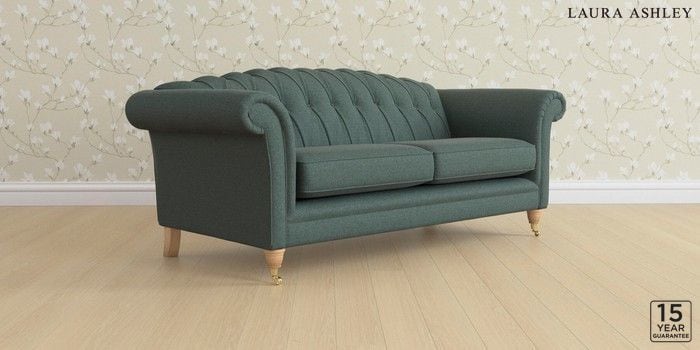 6.12.13 Buy Gloucester Button Back by Laura Ashley 3 Seater Sofa Wooton Forest Green Low Brass Castor - Light Oak from the Next UK online shop Click here to use our accessible website