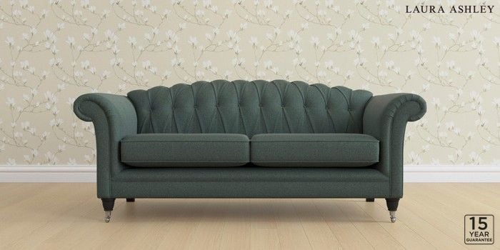 6.12.13 Buy Gloucester Button Back by Laura Ashley 3 Seater Sofa Wooton Forest Green Low Chrome Castor - Black from the Next UK online shop Click here to use our accessible website
