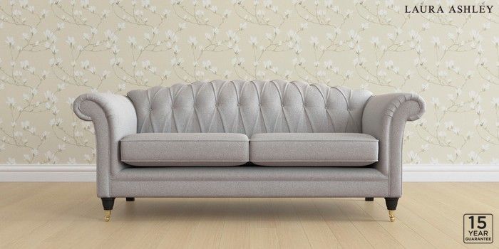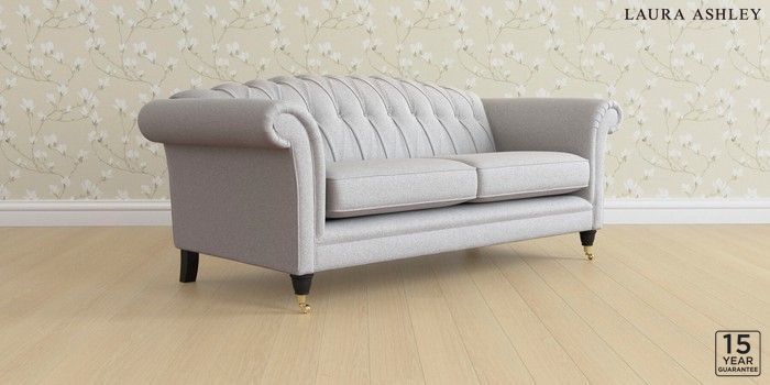 6.12.1 Buy Gloucester Button Back by Laura Ashley 3 Seater Sofa Wooton Pale Steel Grey Low Brass Castor - Black from the Next UK online shop Click here to use our accessible website