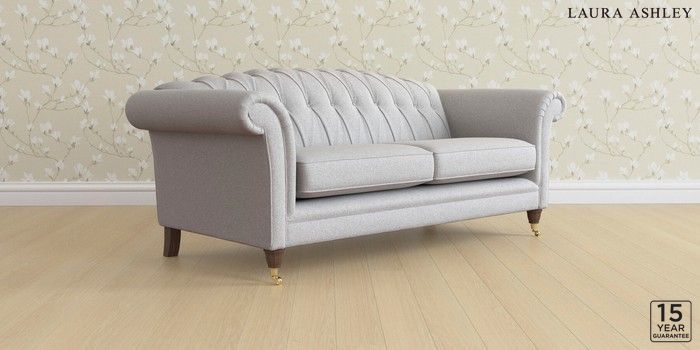 6.12.1 Buy Gloucester Button Back by Laura Ashley 3 Seater Sofa Wooton Pale Steel Grey Low Brass Castor - Chestnut from the Next UK online shop Click here to use our accessible website